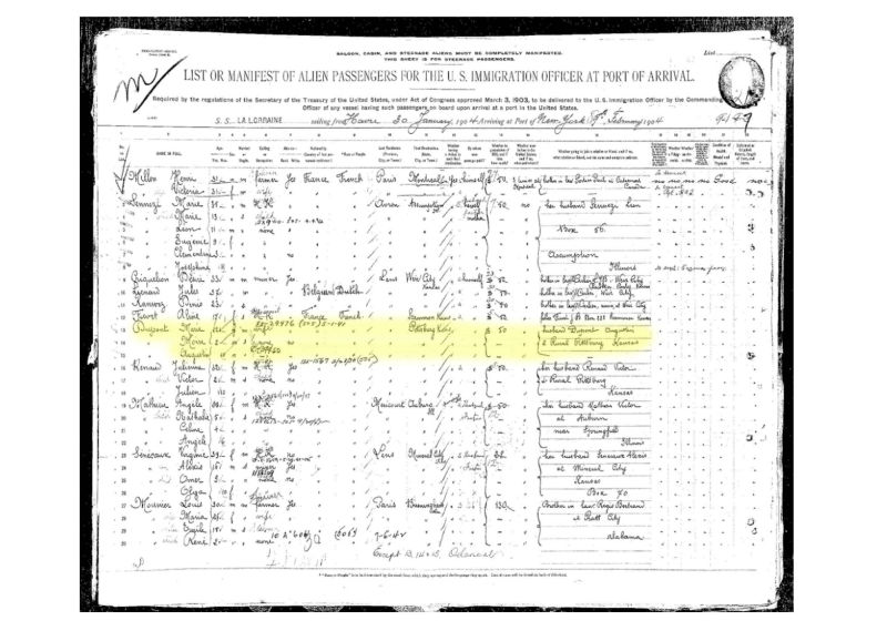 Leaving Le Havre, they arrived in New York on 02/12/1904.