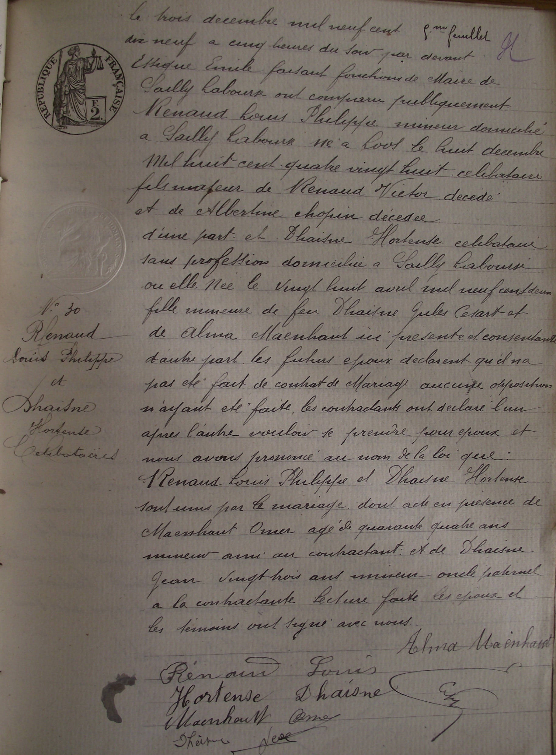 Moise RENAUD (1874) his wife Marie D'HAILLECOURT (1882) and their daughter Marie RENAUD 1903